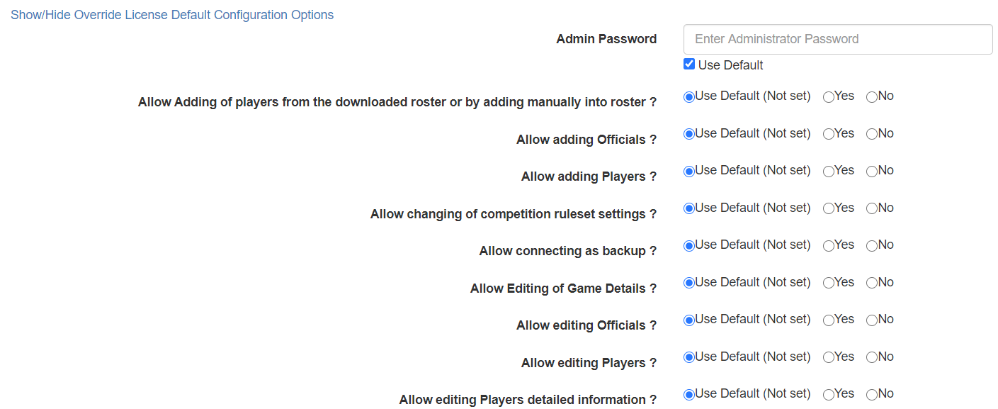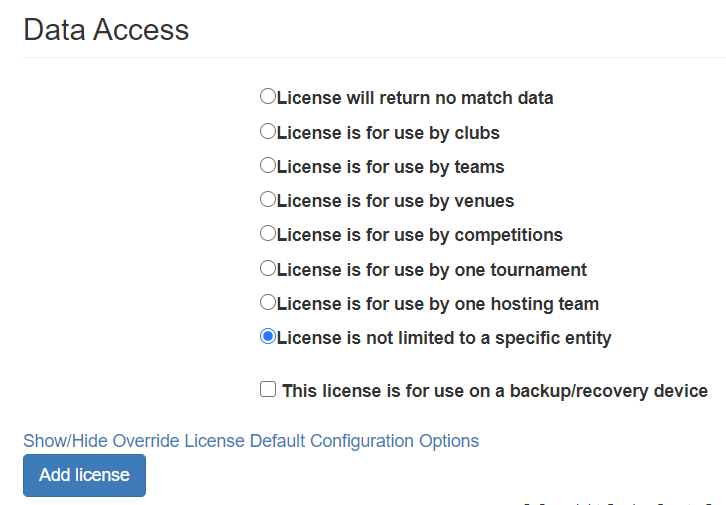 5. To Modify the License Options click Show/Hide Override License Default Configuration Options - this will allow you to set custom configurations for this license.