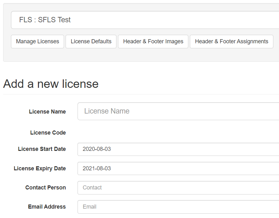 Note. We recommend naming the license something clear to its purpose so it is easily identifiable e.g. Club 15 Home License.